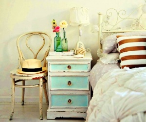 Воздушный, броский и романтический – вот краткое описание стиля шебби шик. Шебби (shabby) в переводе означает "потертый". И это очень верно – так как украшением стиля могут стать тронутые временем мебель, безделушки или текстиль, затерявшиеся в старье блошиных рынков или пылящиеся среди забытых вещей (возможно, принадлежавших еще вашей бабушке) в кладовках и на чердаках. И, чтобы оформить свой дом в стиле шебби шик, совсем необязательно покупать новые предметы интерьера - вполне возможно, что алмаз, способный стать бриллиантом, хранится прямо у вас под носом – и старый шкаф или комод или дышащая на ладан рамка только и ждут того, кто приложит к ним умелые руки. Применяя белую глазурь и краску, а затем, очищая и шлифуя верхние слои, особенно по краям, вы сможет придать любым предметам очарование стиля шебби шик.